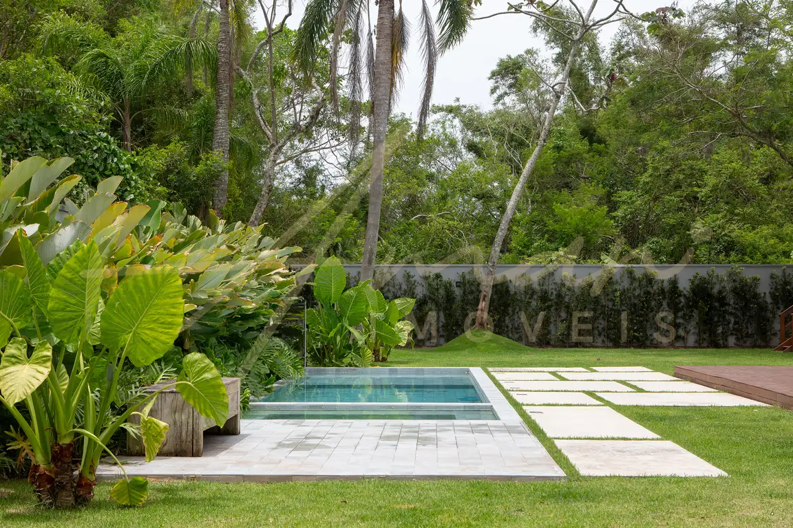 Em uma localização privilegiada a apenas 300 metros da praia da Cachoeira do Bom Jesus, esta casa TOTALMENTE MOBILIADA é uma promessa de modernidade e conforto. Com 314m² de área construída em um amplo terreno de 740m², inclui 4 suítes, sendo uma delas térrea a suíte master com quase 40m², oferecendo espaço e privacidade excepcionais.